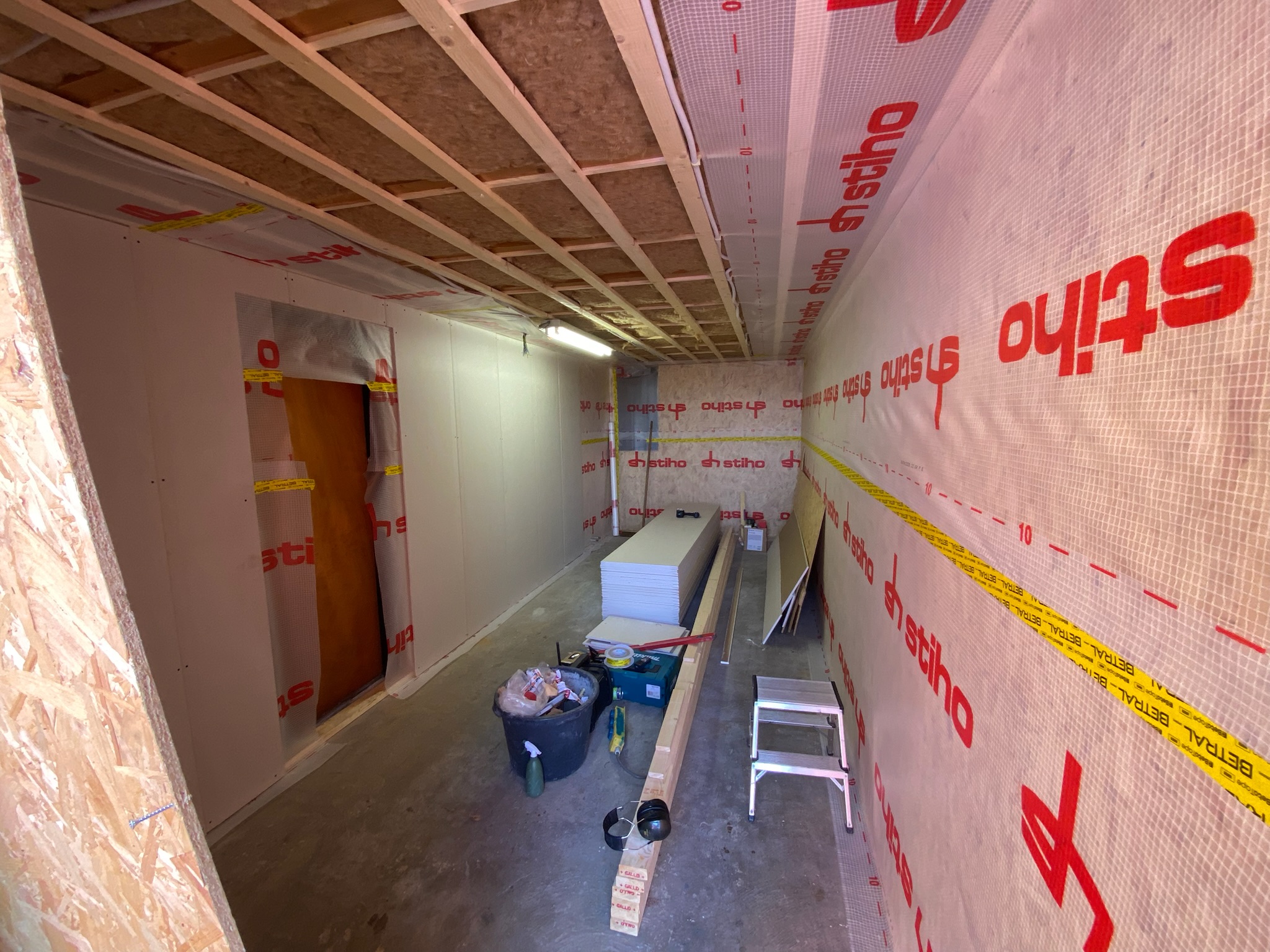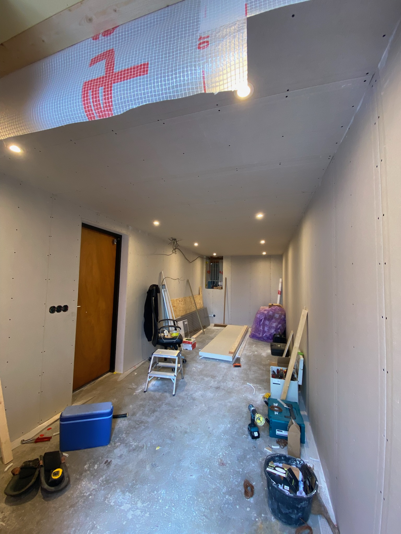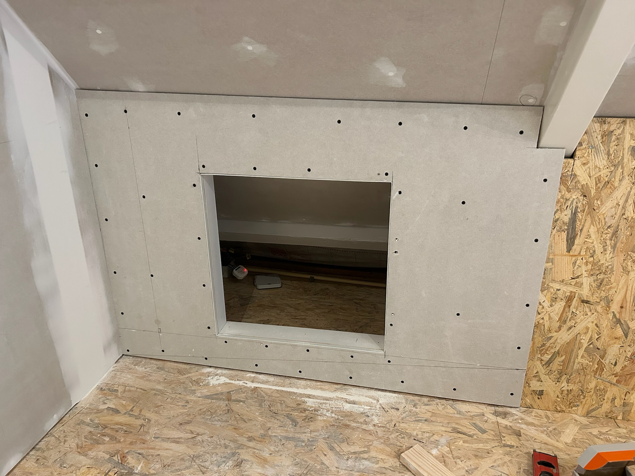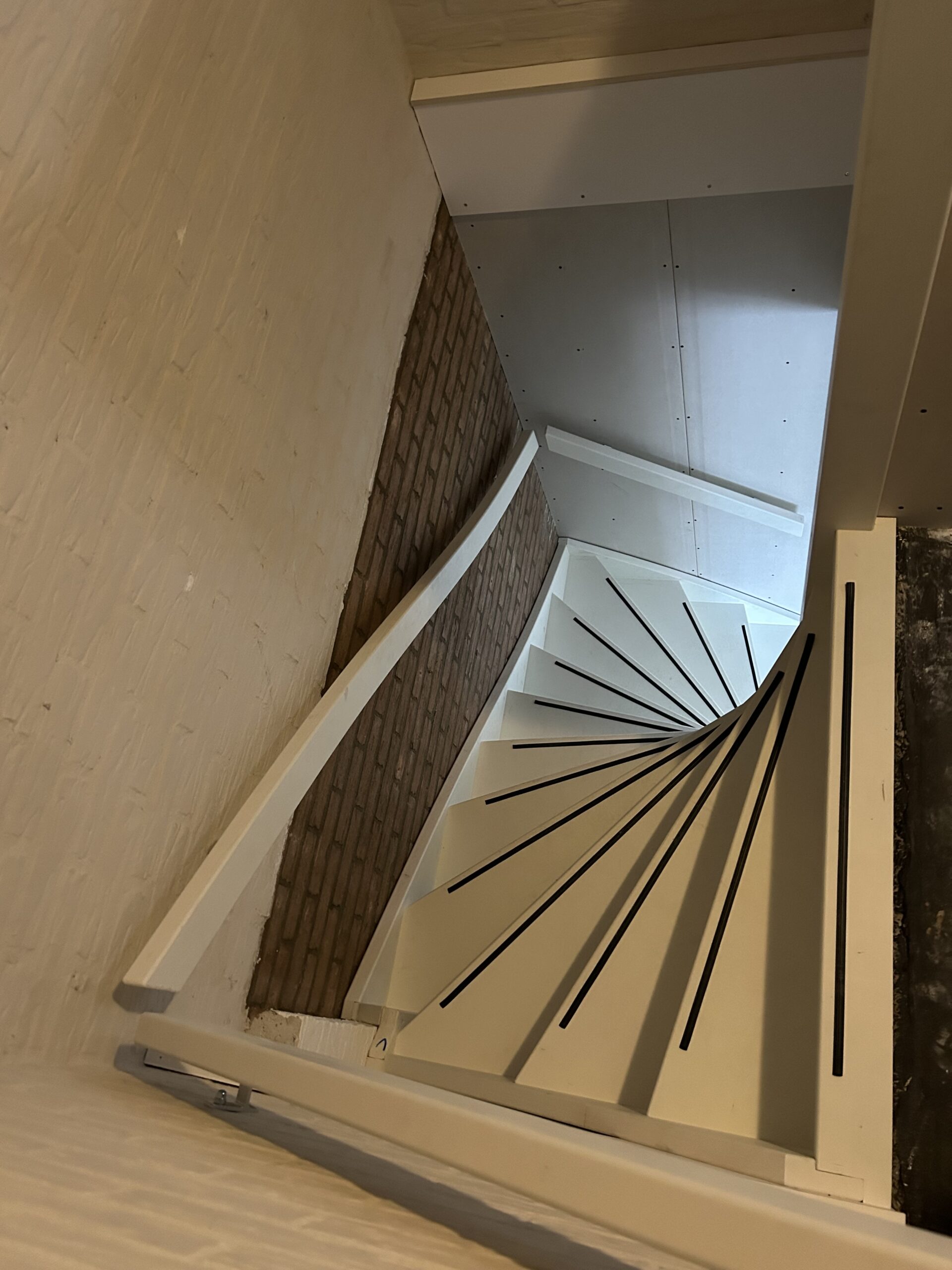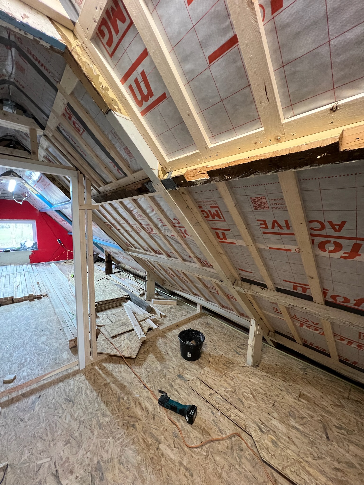 Bij de verbouwing op de 1e verdieping van deze woning hebben we ook de toegang verbetert middels een nieuwe trap. Verder is het de dak van binnenuit geïsoleerd en afgewerkt met gips platen net als beide kopgevels en hebben we de ruimte achter de knieschotten optimaal benut door er kast ruimte in de verwerken.