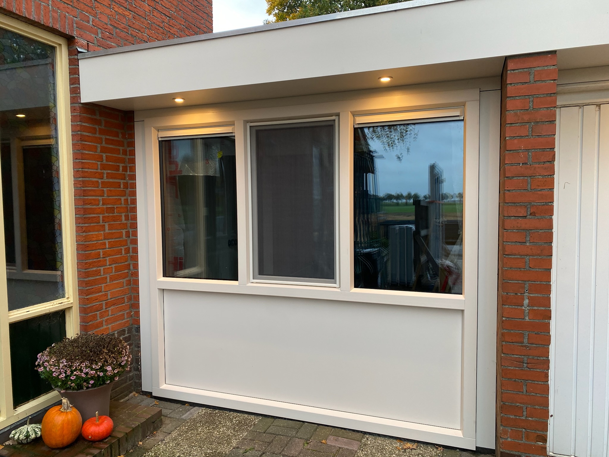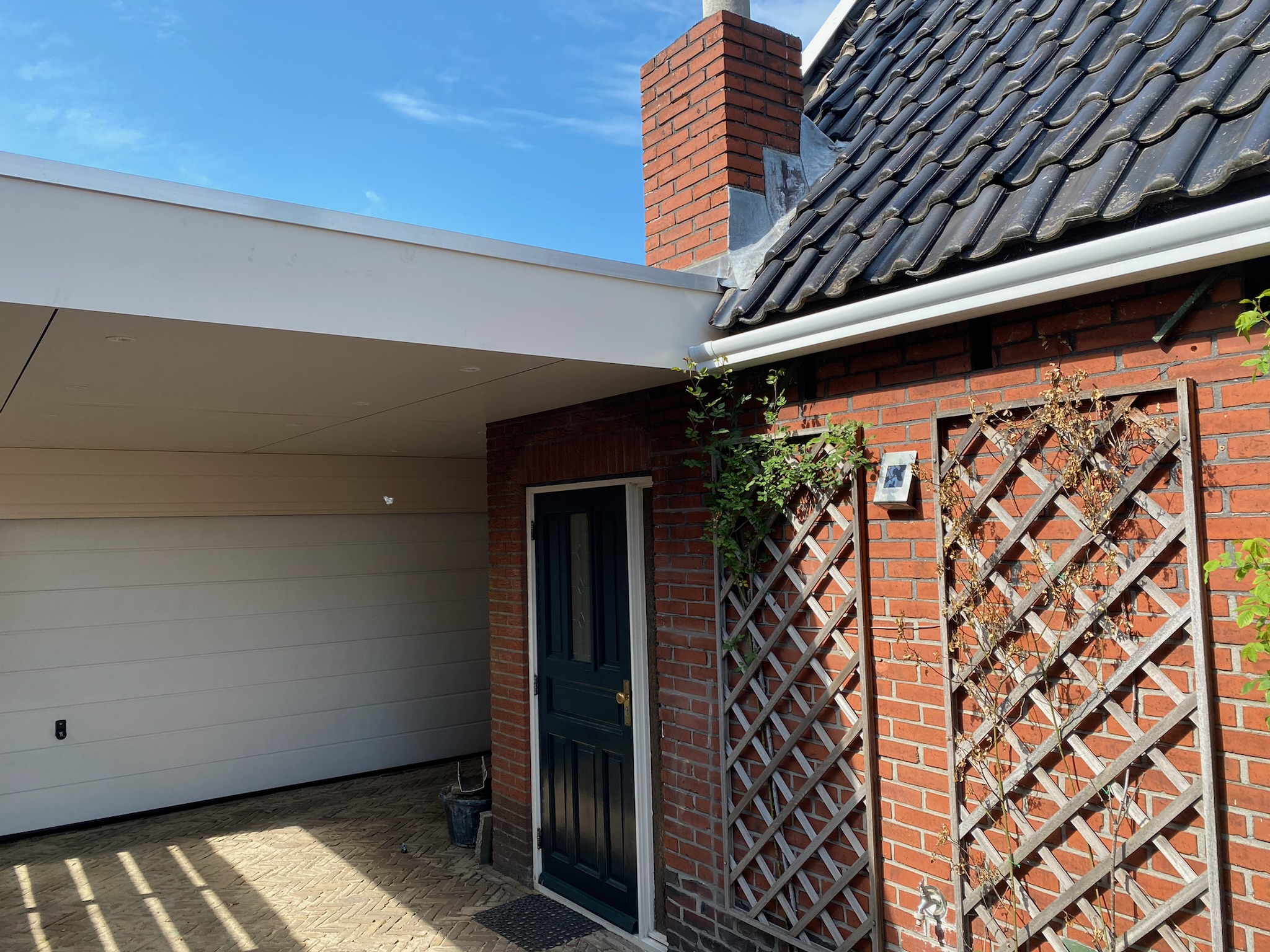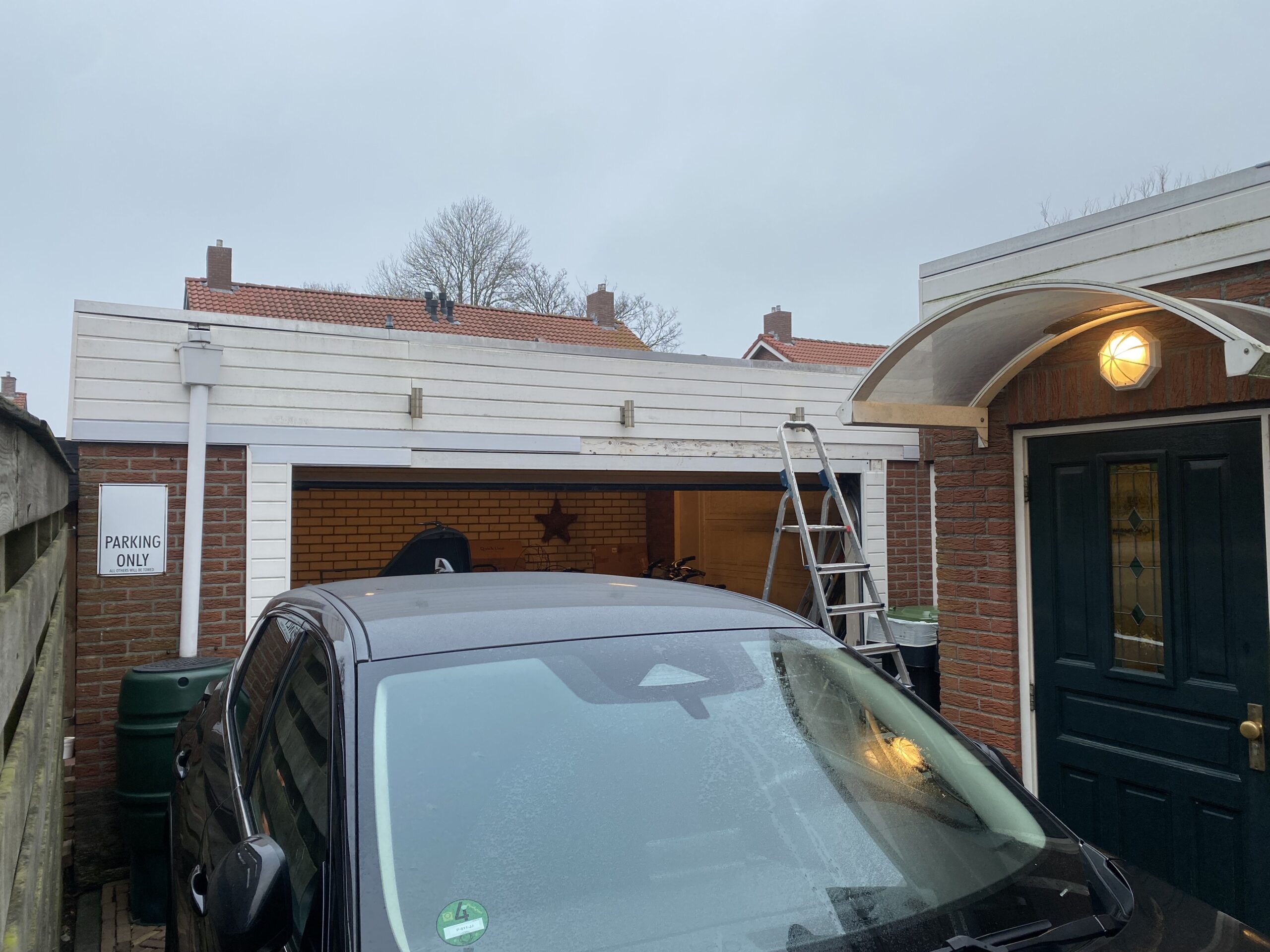 Bij deze woning in Scheemda hebben we de garage verbouwd tot woon ruimte, voorzien van een kunststof pui en hebben we de bekleding van het overstekje vervangen voor een keralit boeideel een verlijmt trespa plafond inclusief spotjes. Komende dagen vervangen we op de 1e verdieping ook de de kozijnen voor kunststof en plaatsen we openslaande tuindeuren in de keuken. De fotos daarvan volgen nog.