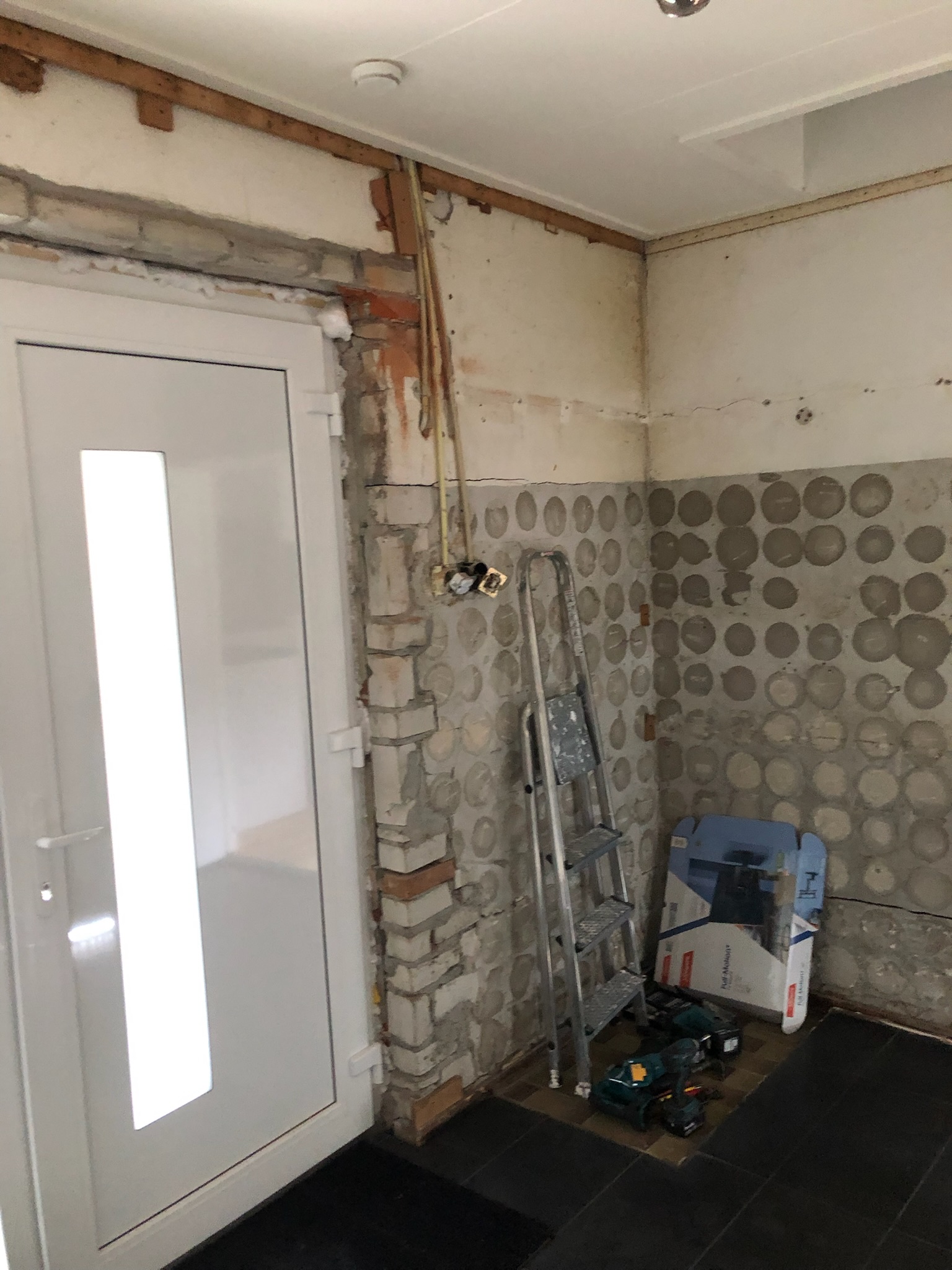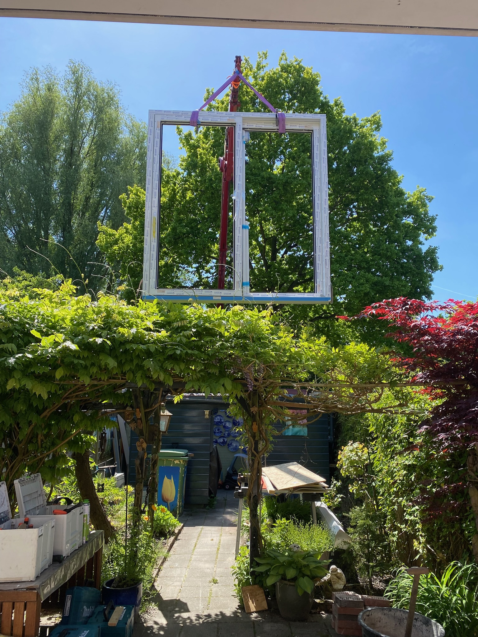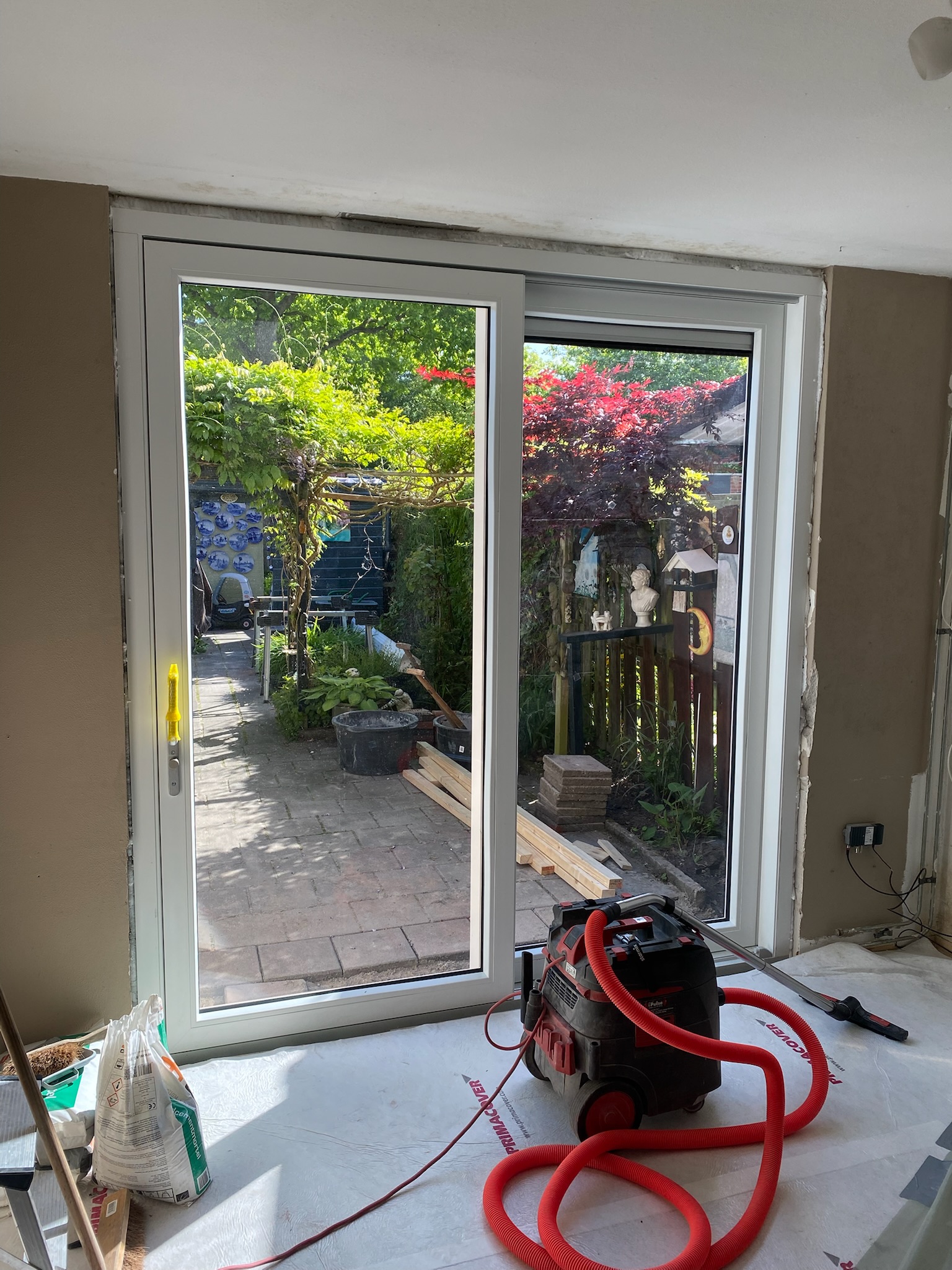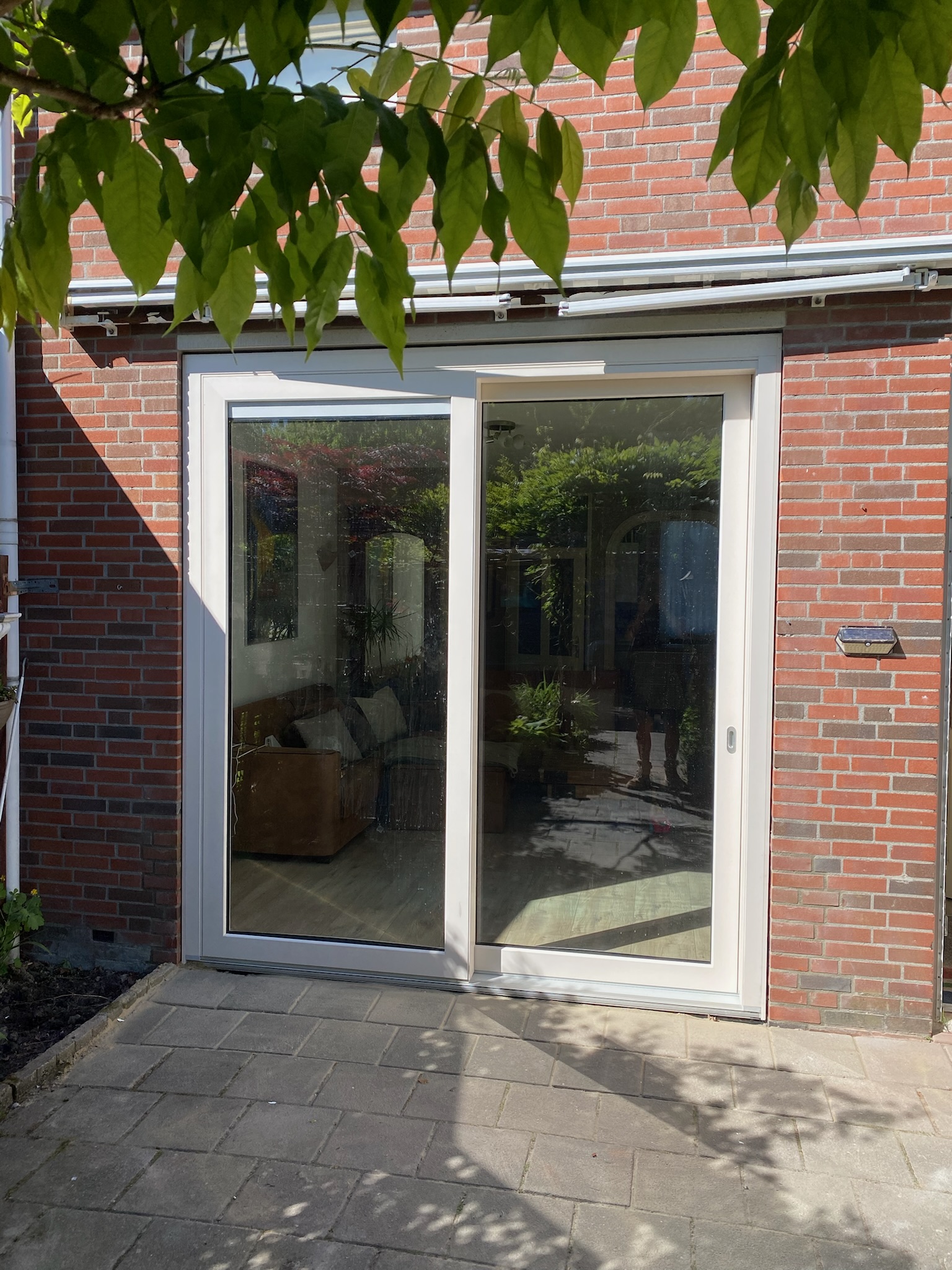 Bij deze woning in Scheemda hebben we de garage verbouwd tot woon ruimte, voorzien van een kunststof pui en hebben we de bekleding van het overstekje vervangen voor een keralit boeideel een verlijmt trespa plafond inclusief spotjes. Komende dagen vervangen we op de 1e verdieping ook de de kozijnen voor kunststof en plaatsen we openslaande tuindeuren in de keuken. De fotos daarvan volgen nog.