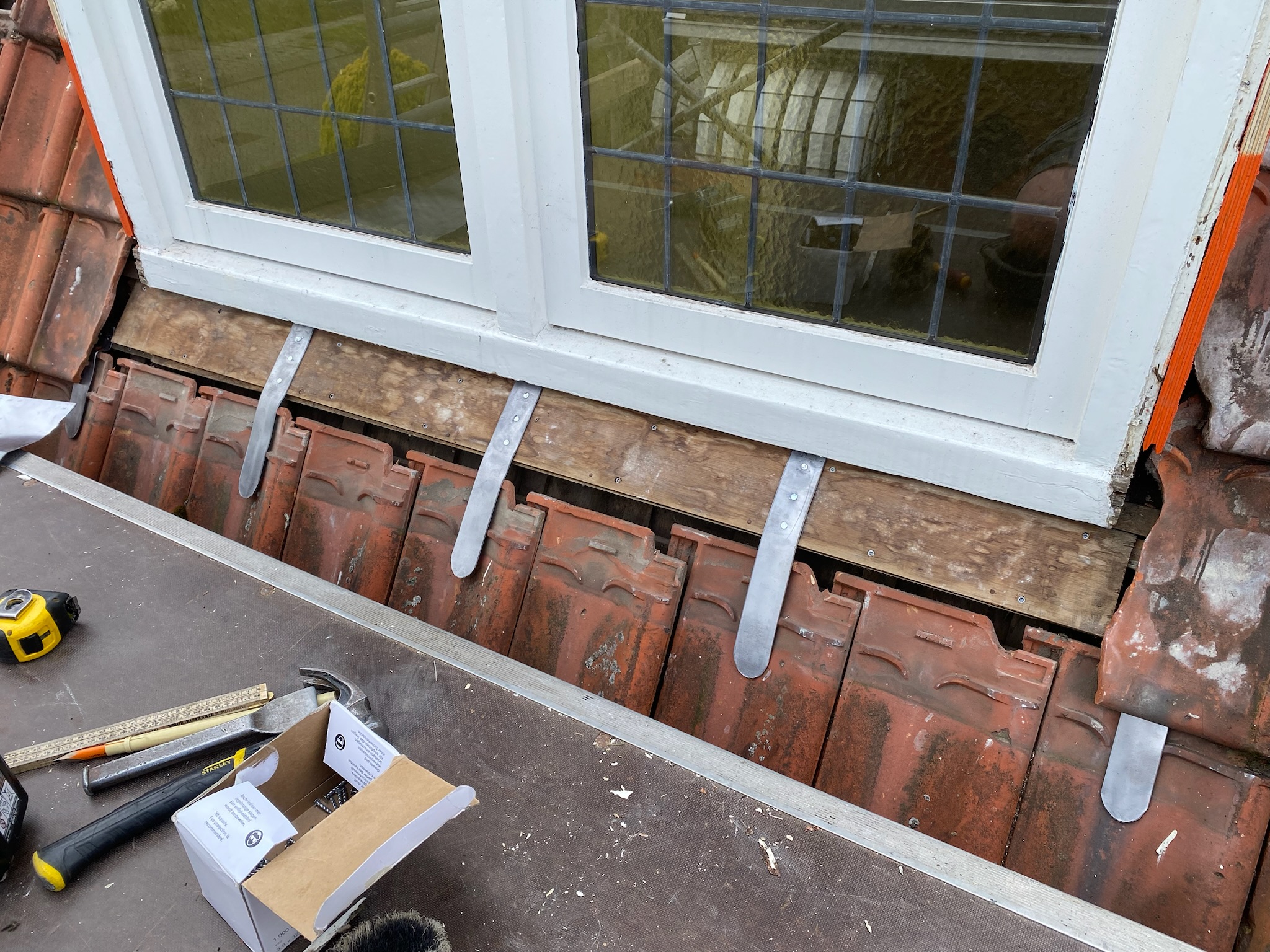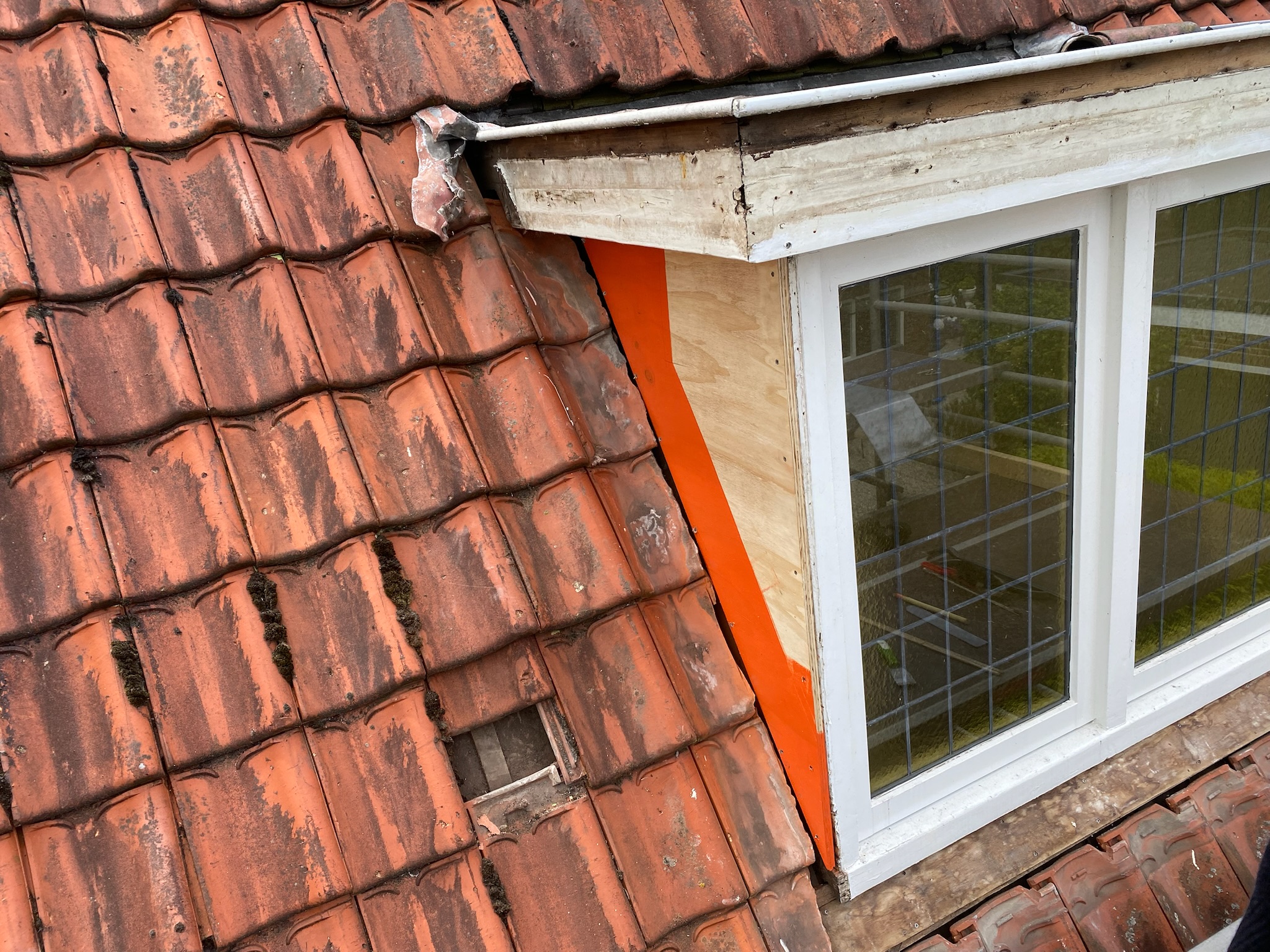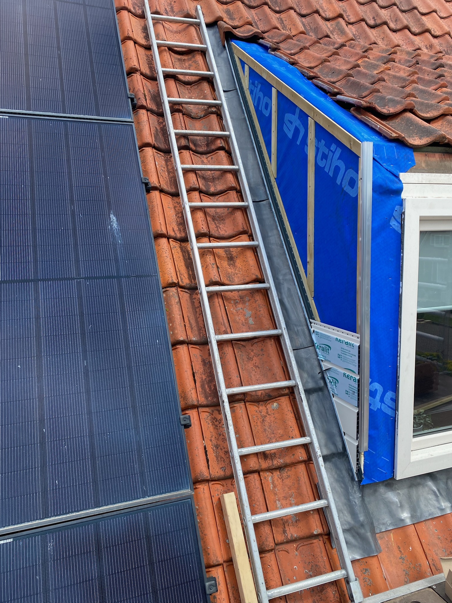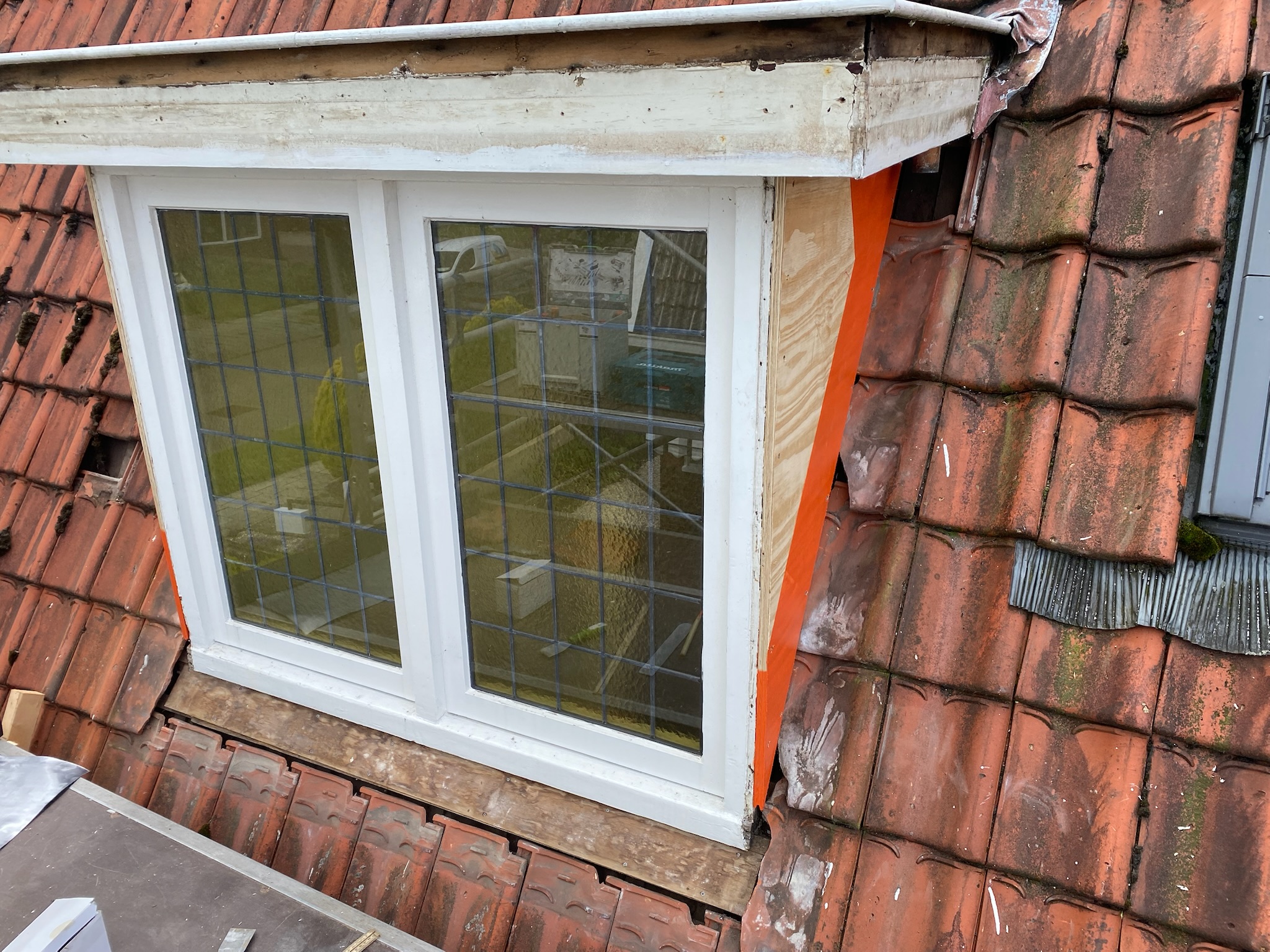 Ook hebben we rondom de bestaande aanbouw de boeidelen vervangen voor keralit, is de dakbedekking vervangen en hebben we aan de achterkant 4 nieuwe hemelwater afvoeren aangebracht, lood vervangen en een stukje bevingschade hersteld.