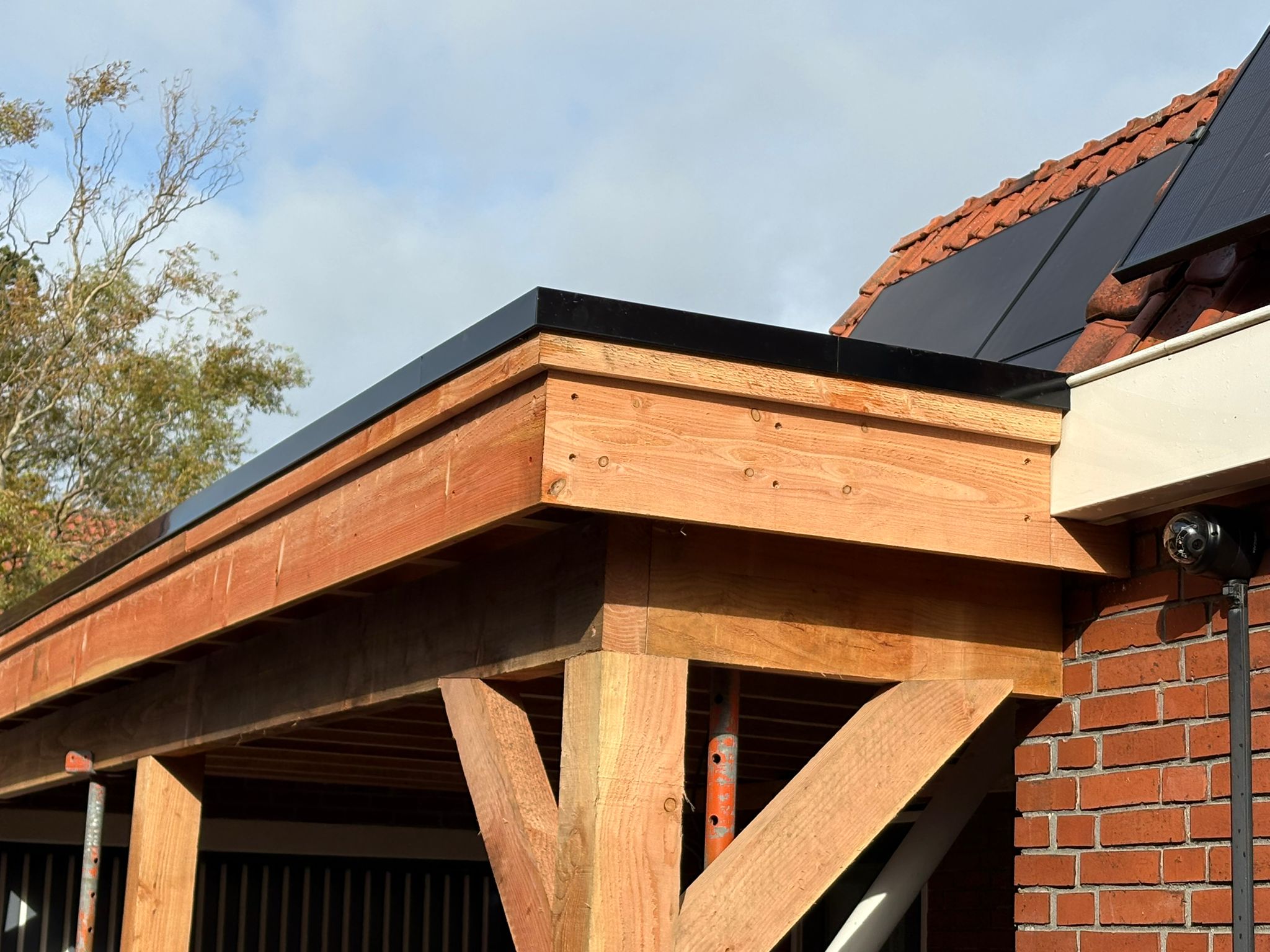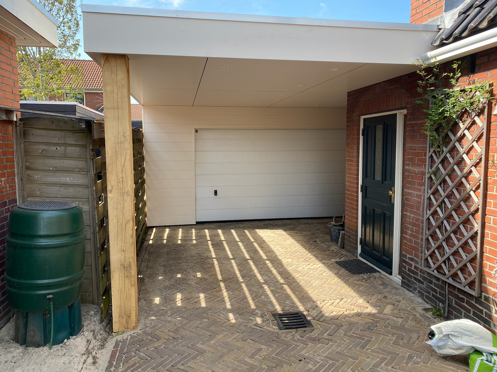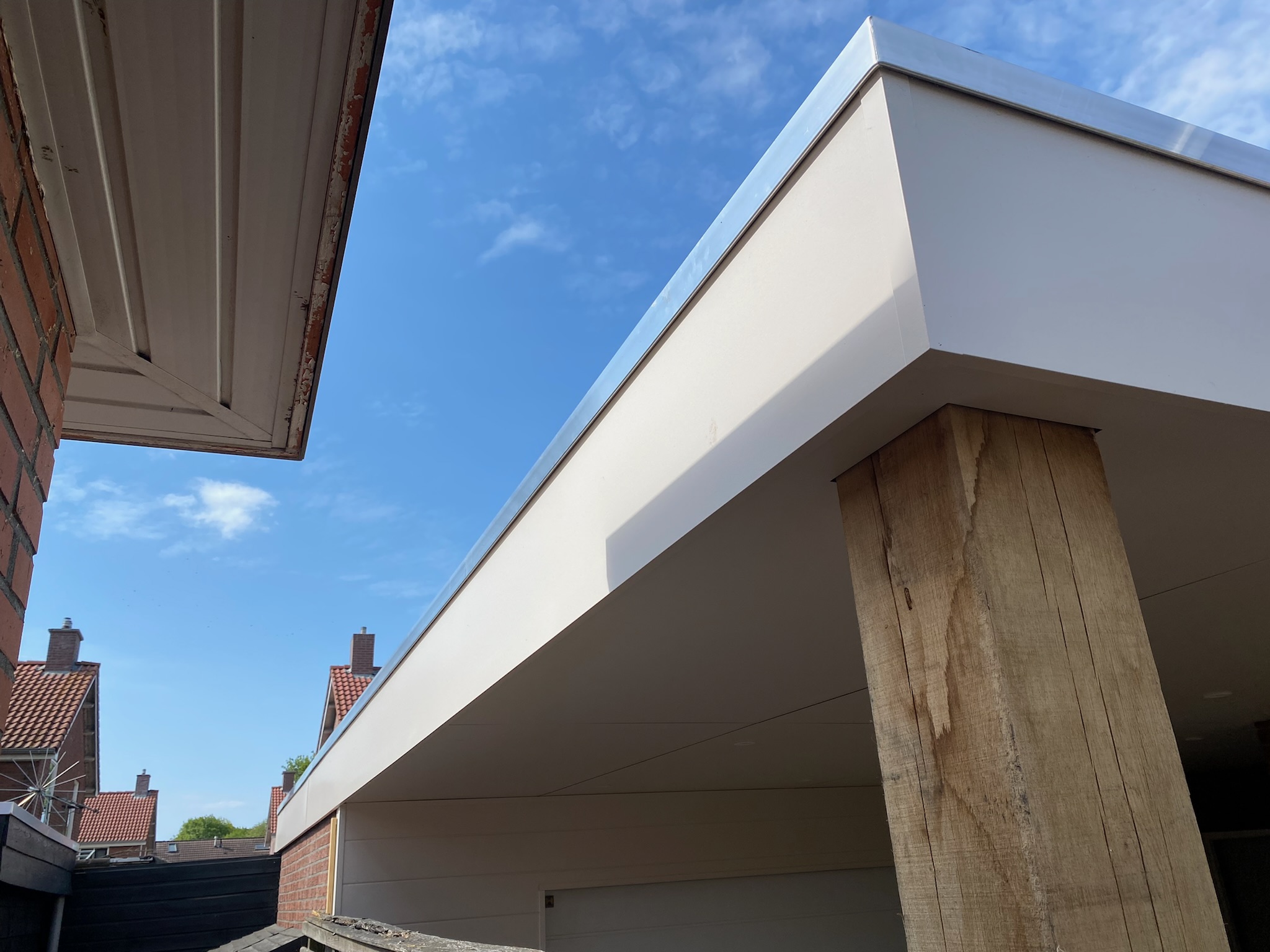 Hier hebben we een luxe carport gebouwd geheel naar wens van de klant, strak, onderhoudsvrij en met een luxe uitstraling. Het trespa plafond met ingebouwde spotjes zorgt voor een strak, modern karakter doordat het volledig is verlijmd. In combinatie met Keralit boeidelen ontstaat een luxe uitstraling dat jarenlang mooi blijft zonder onderhoud.