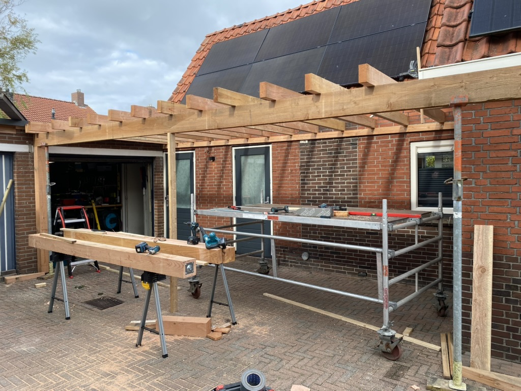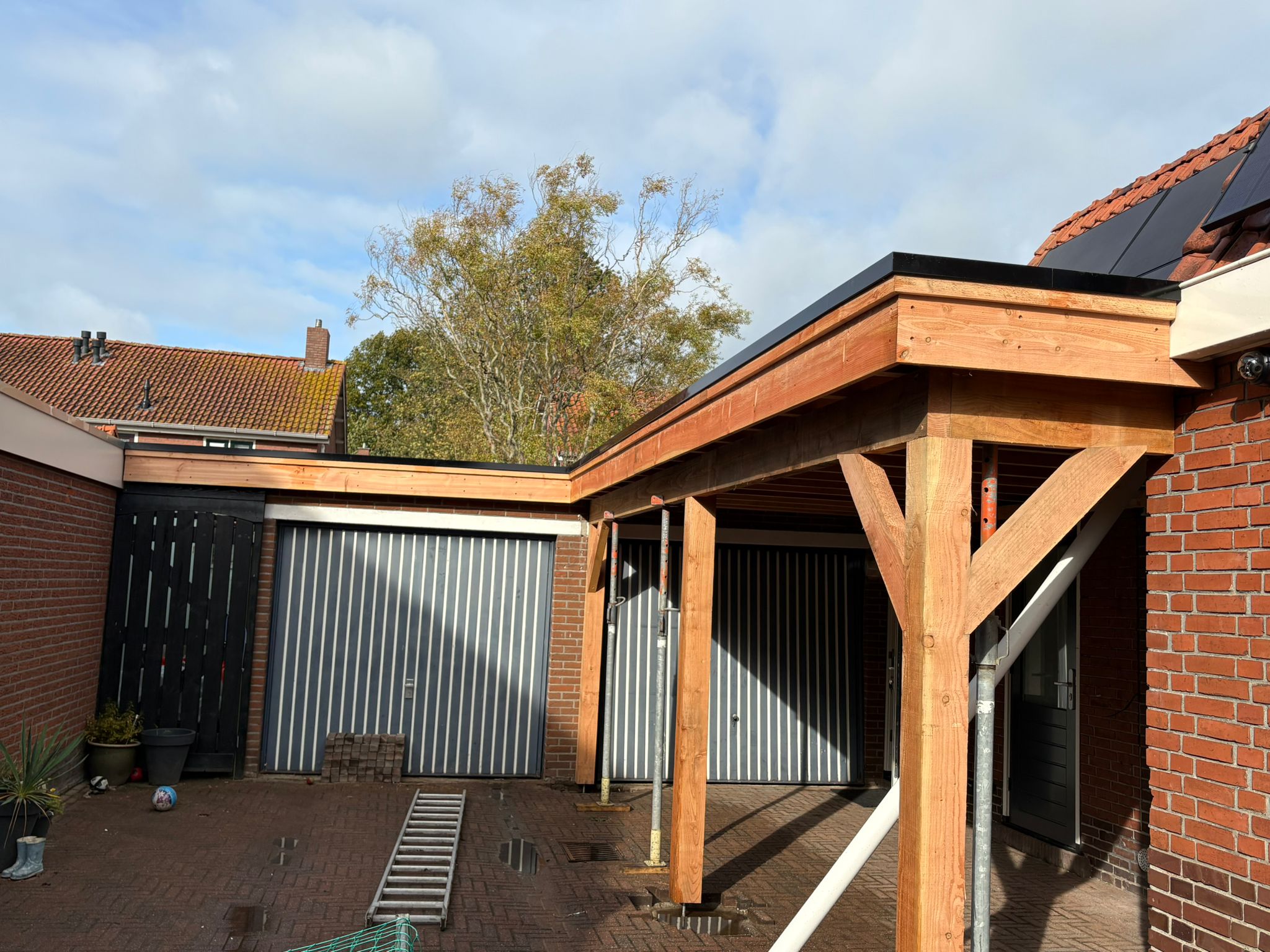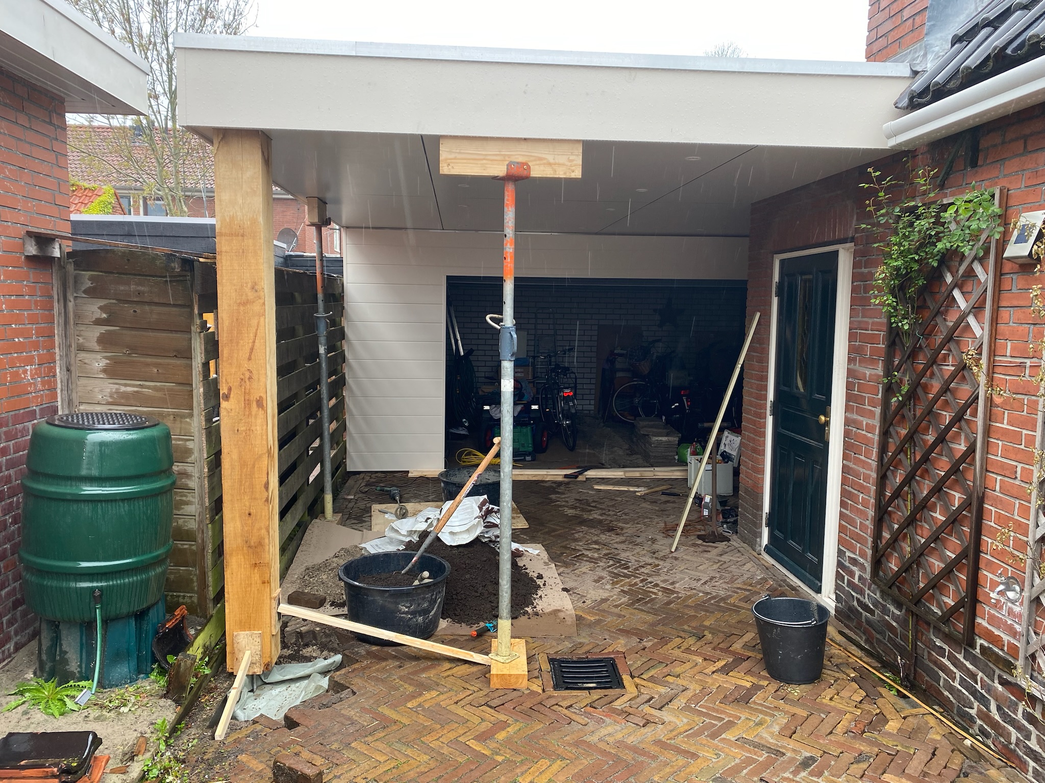 Hier hebben we een luxe carport gebouwd geheel naar wens van de klant, strak, onderhoudsvrij en met een luxe uitstraling. Het trespa plafond met ingebouwde spotjes zorgt voor een strak, modern karakter doordat het volledig is verlijmd. In combinatie met Keralit boeidelen ontstaat een luxe uitstraling dat jarenlang mooi blijft zonder onderhoud.